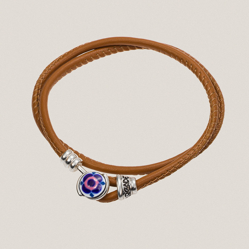 Pulsera con placa de porcelana pintada a mano bajo esmalte, inspirada en las placas tradicionales de SARGADELOS