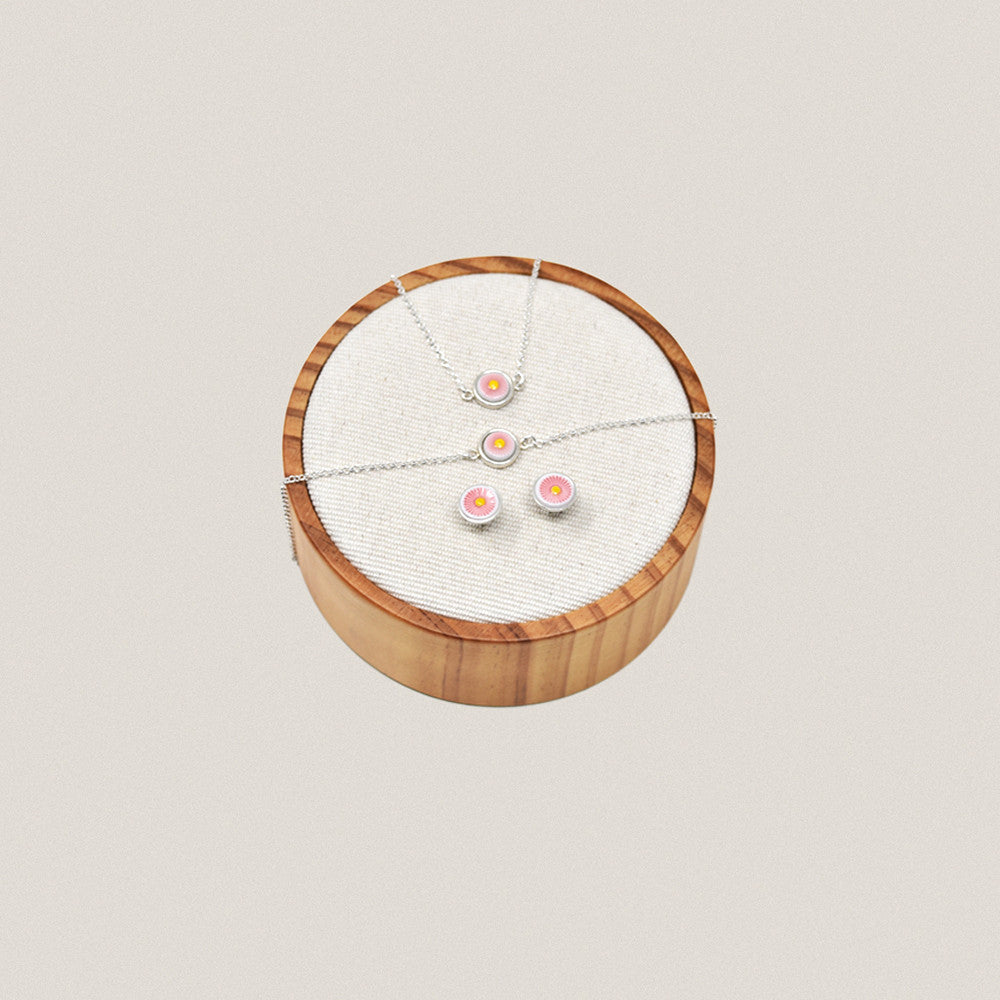 Choker with pink porcelain flower and 925 silver chain of 35 cm with extension of 6 cm.