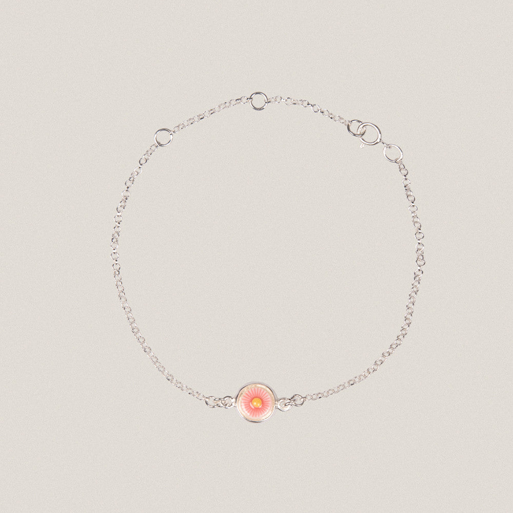 Bracelet with pink porcelain flower and 925 silver chain of 14 cm with extension of 6 cm.