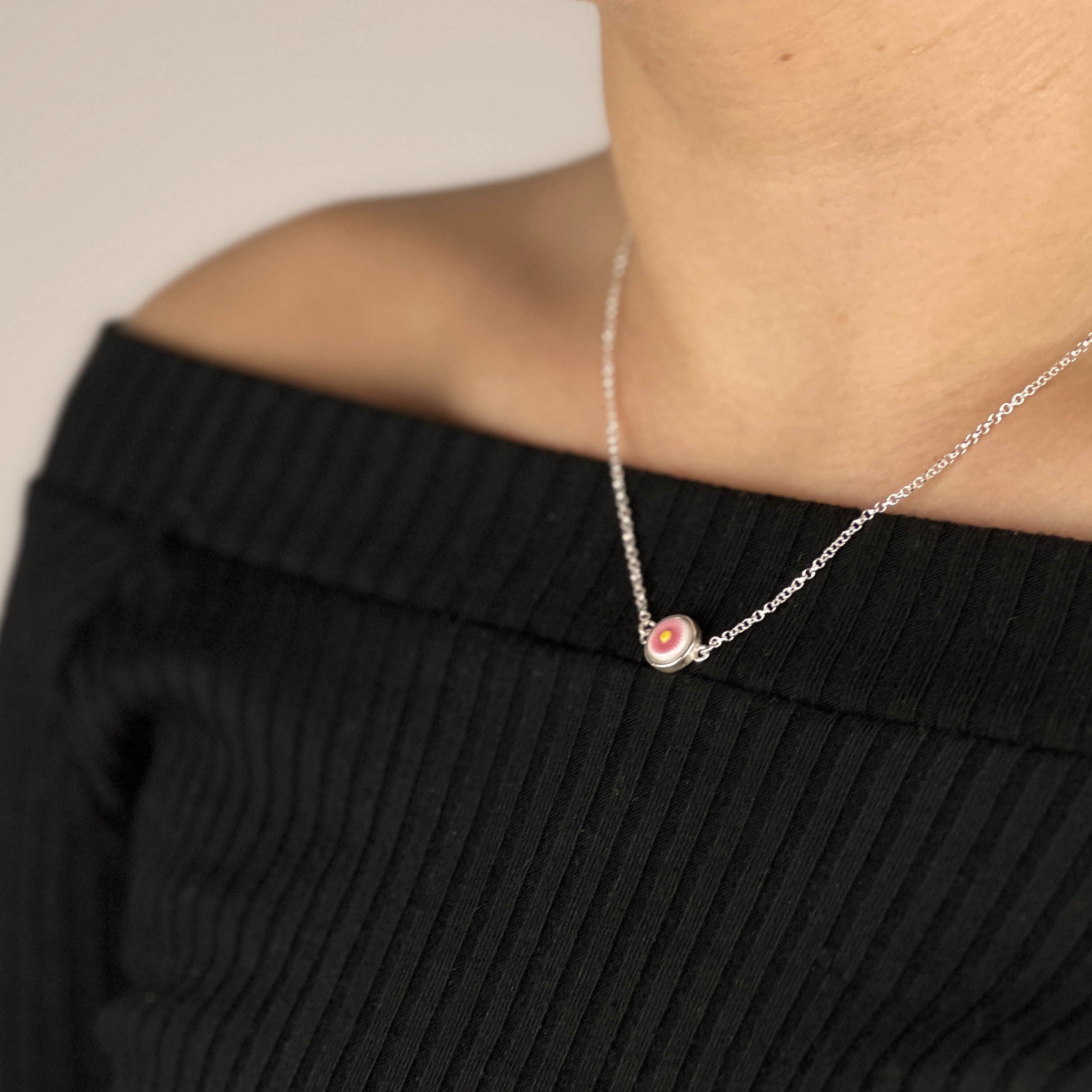Choker with pink porcelain flower and 925 silver chain of 35 cm with extension of 6cm.