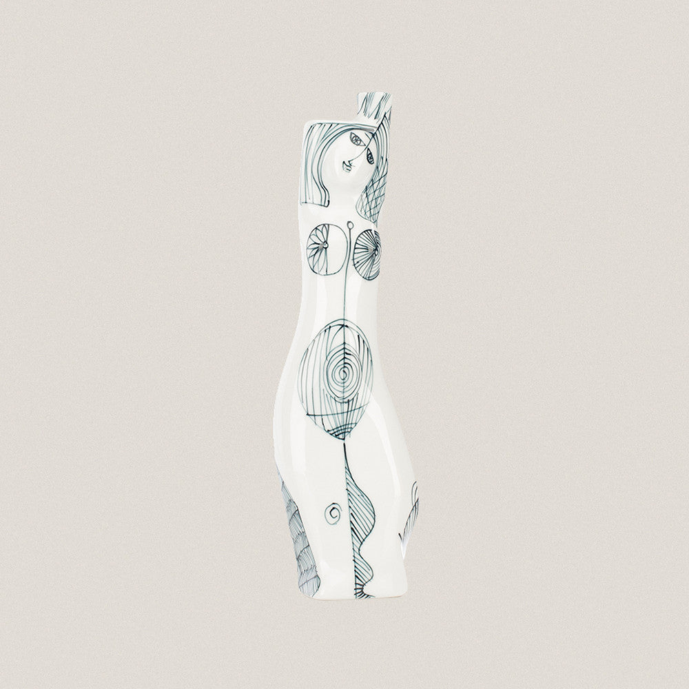 Figura-Botella con forma antropomórfica que representa una mujer. Pintada a mano con pincel.