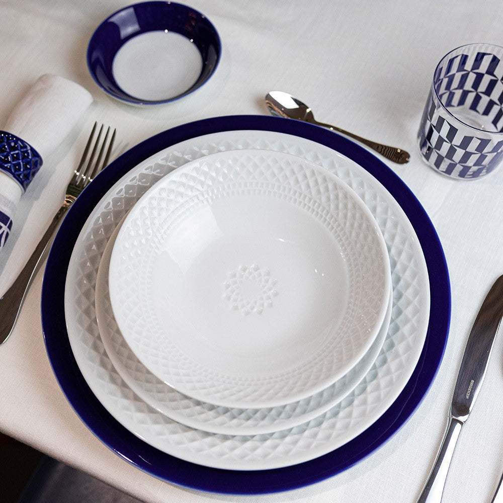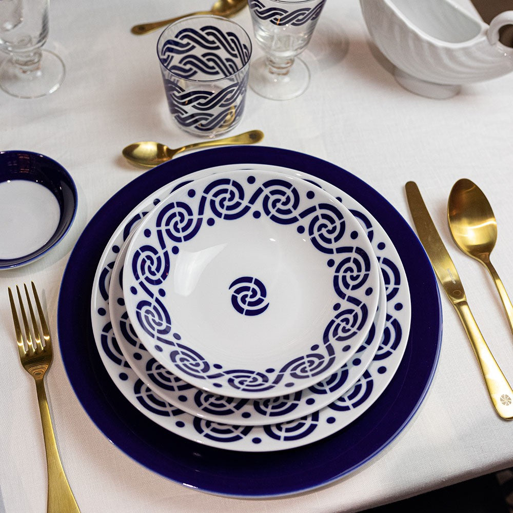 Bajoplato perteneciente al decorado V2 realza el azul cobalto, color cerámico por excelencia y emblema de SARGADELOS.