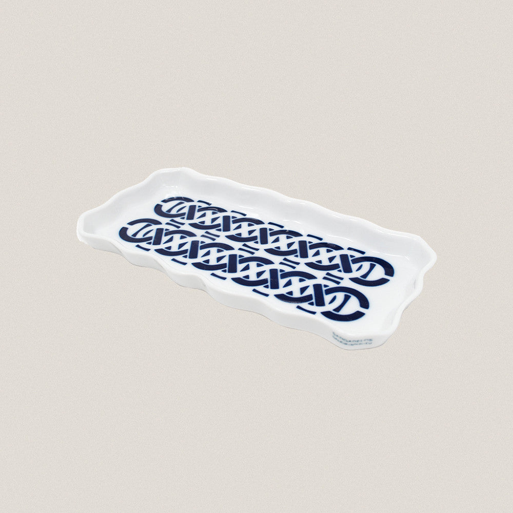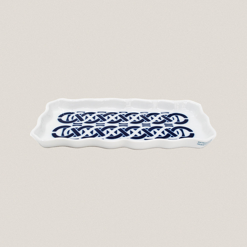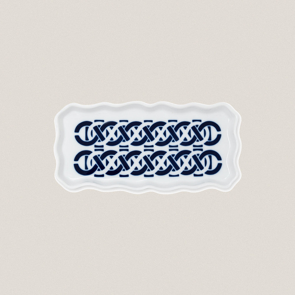El diseño Encadrelado se inspira en las decoraciones de entrelazos que se encontraron talladas en piedra en la cultura castreña.Medidas: Largo: 17 cm. Ancho: 8 cm. Material: Porcelana. Cuidados: Apto para lavavajillas y microondas. Limpiar con un paño suave y húmedo.