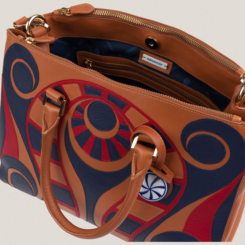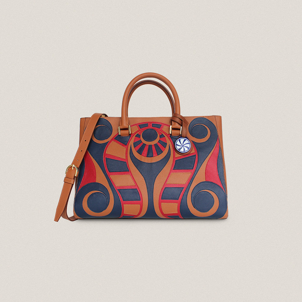 El bolso Voluta está elaborado en piel de vacuno basado en nuestra icónica figura de porcelana. Todo su difícil diseño y confección están realizados y cosidos a mano dándole una forma única en la colección. A mayores cuenta con un pequeño colgante con nuestro conocido trisquel intercambiable, hecho y pintado a mano.