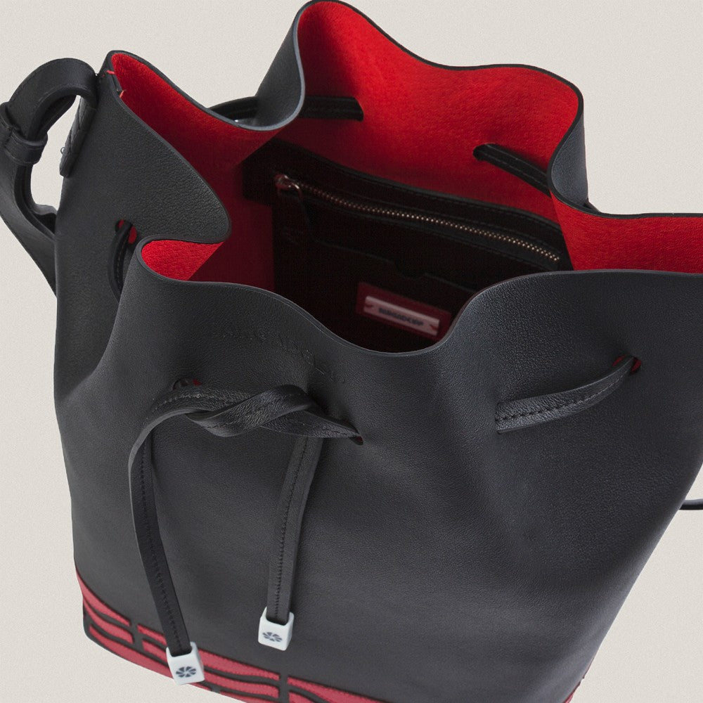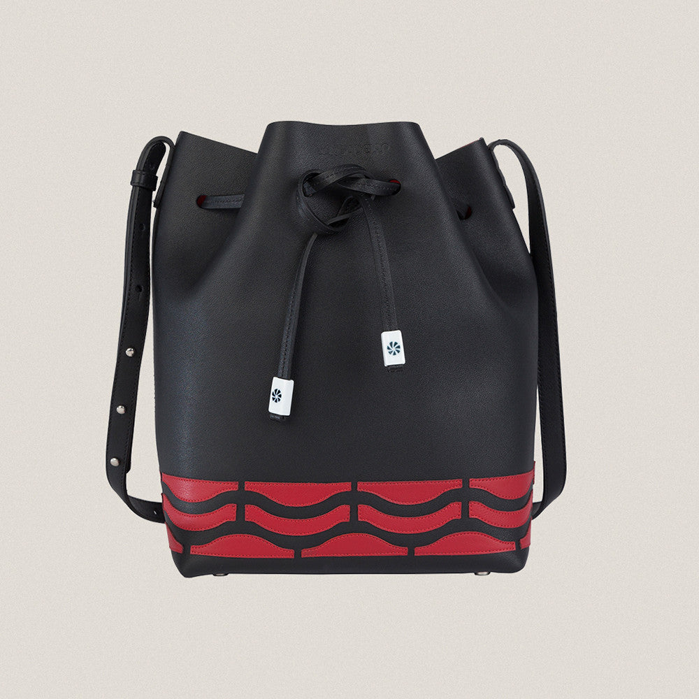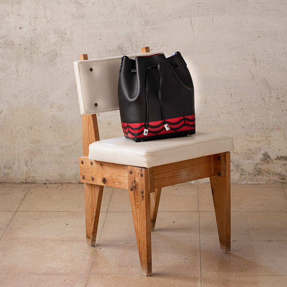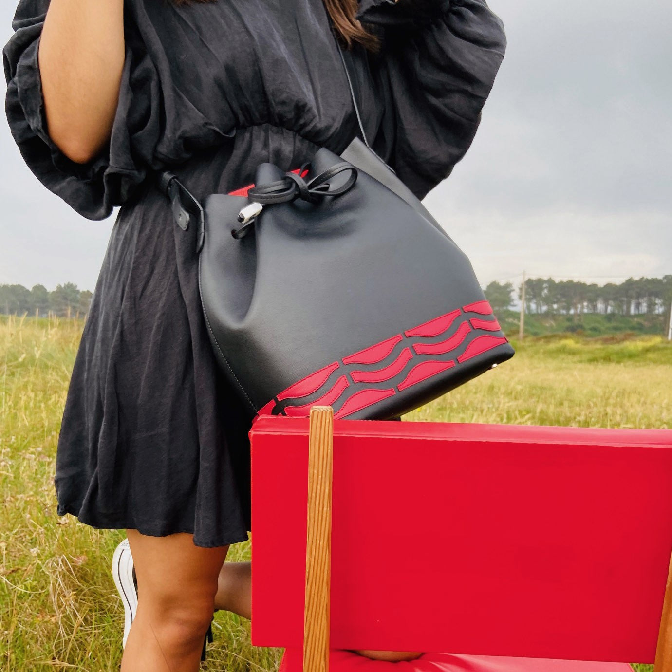 La Bombonera Mar está elaborada en piel de vacuno, tiene un diseño basado en el mar gallego con tejidos cosidos en superposición.