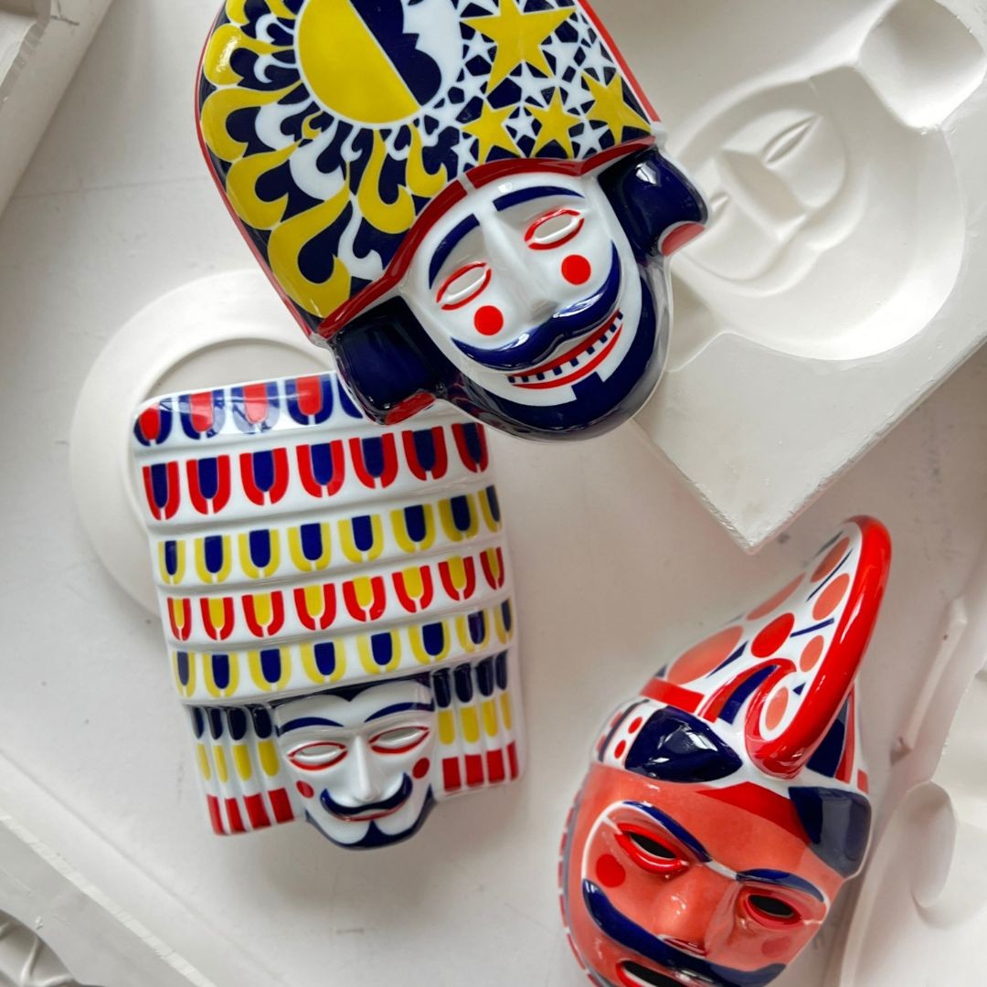 Esta pieza decorativa ha sido pintada a mano sobre la porcelana vidriada con color rojo intenso, cociéndose en esta etapa a 800° C (por tercera vez), de ahí que su proceso de producción sea más laborioso.