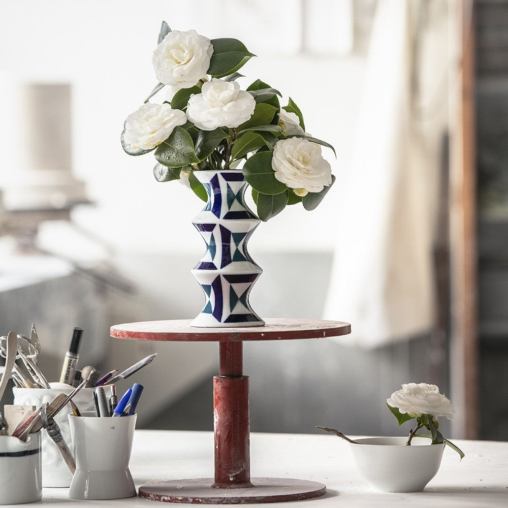 El decorado de este florero se basa en la singular fachada barroca del Monasterio de Monfero, una región montañosa próxima a Pontedeume, en A Coruña.