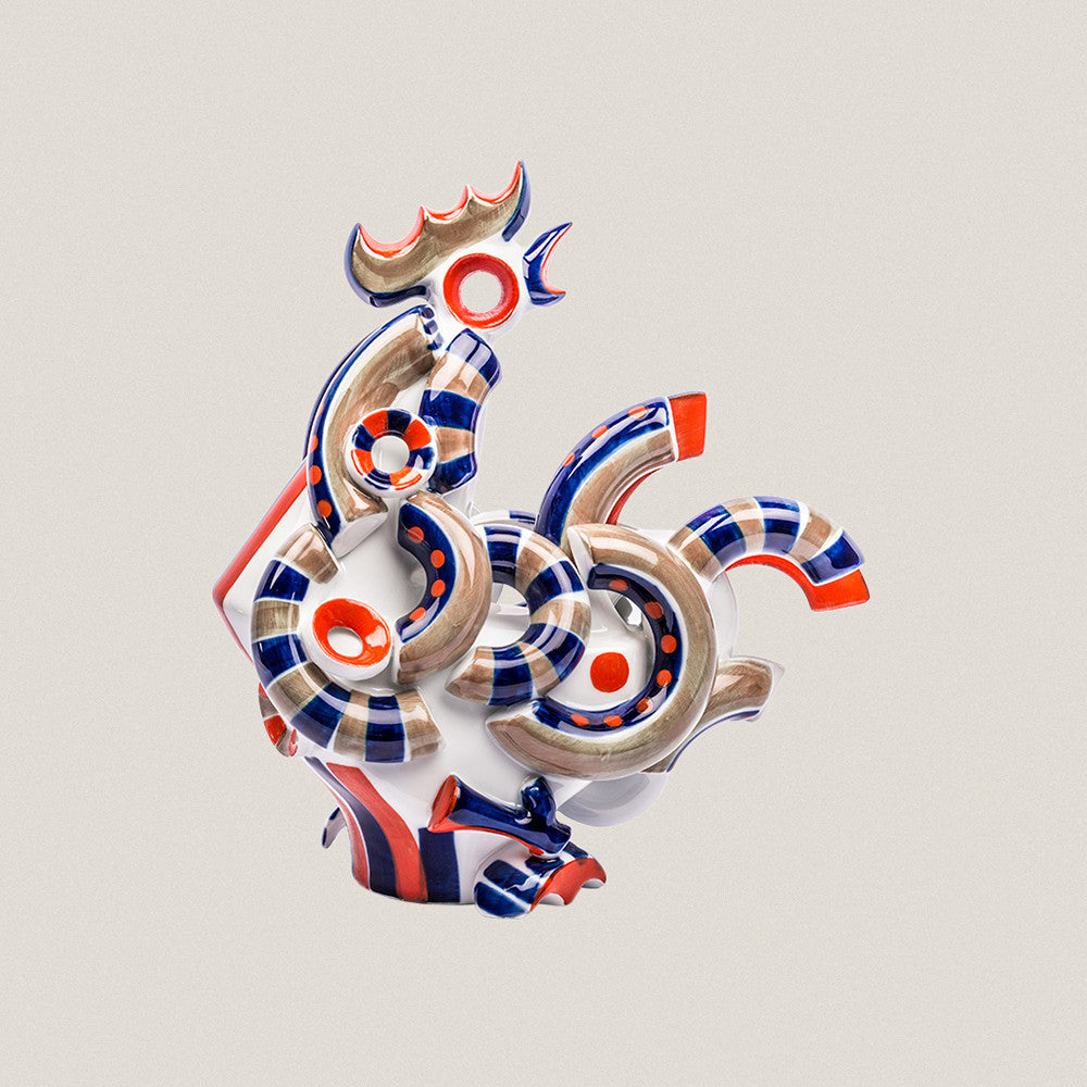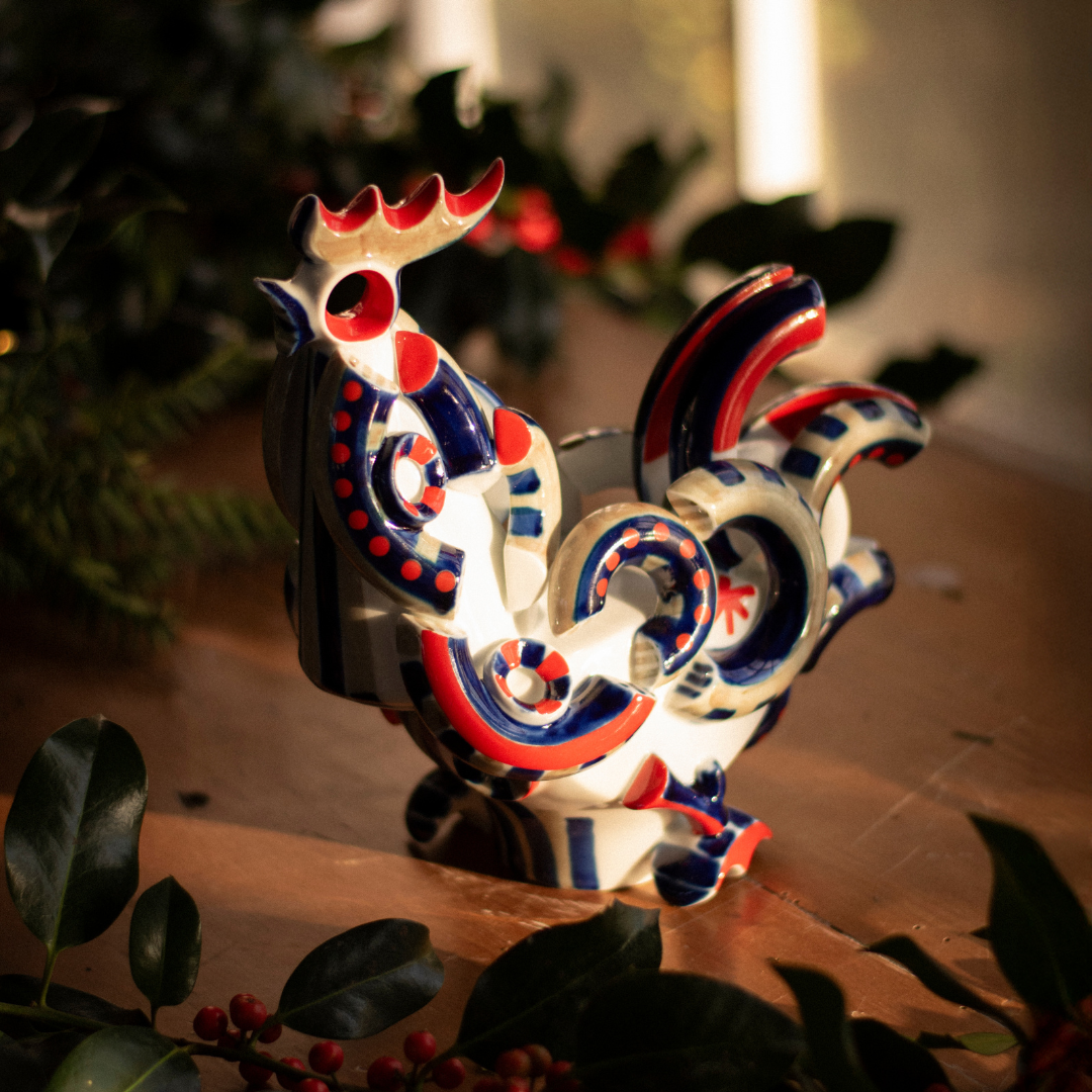 Esta pieza decorativa ha sido pintada a mano sobre la porcelana vidriada con color rojo intenso, cociéndose en esta etapa a 800° C (por tercera vez), de ahí que su proceso de producción sea más laborioso.