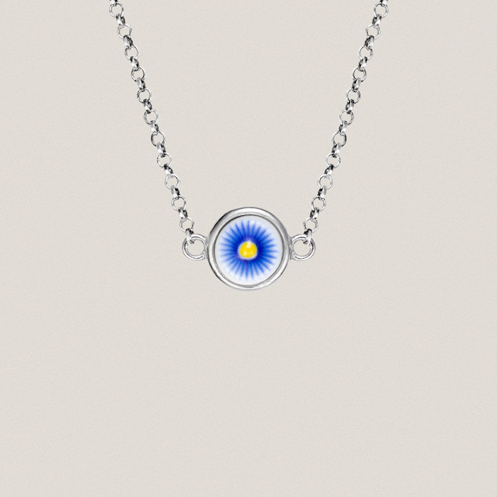 Gargantilla con flor azul de porcelana y cadena de plata 925 de 35 cm con alargador de 6 cm.