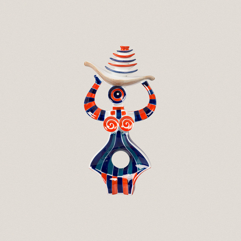 Esta pieza decorativa ha sido pintada a mano sobre la porcelana vidriada con color rojo intenso, cociéndose en esta etapa a 800° C (por tercera vez), de ahí que su proceso de producción sea más laborioso.