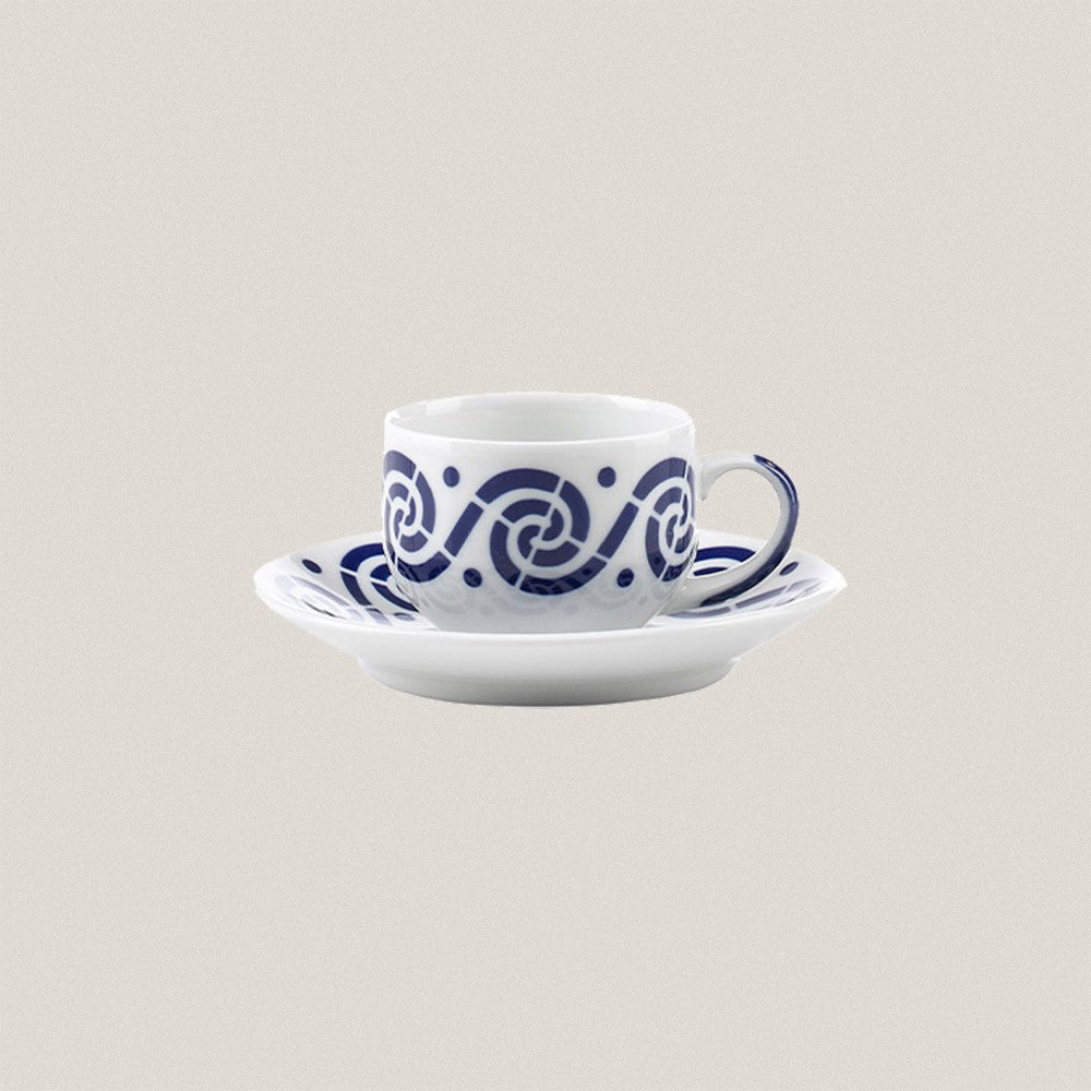 Juego de desayuno de 2 servicios pertenecientes al decorado Espiroide que se inspira en una diadema del siglo V a.C (aprox.) encontrada en el Castro de Elviña (A Coruña).
