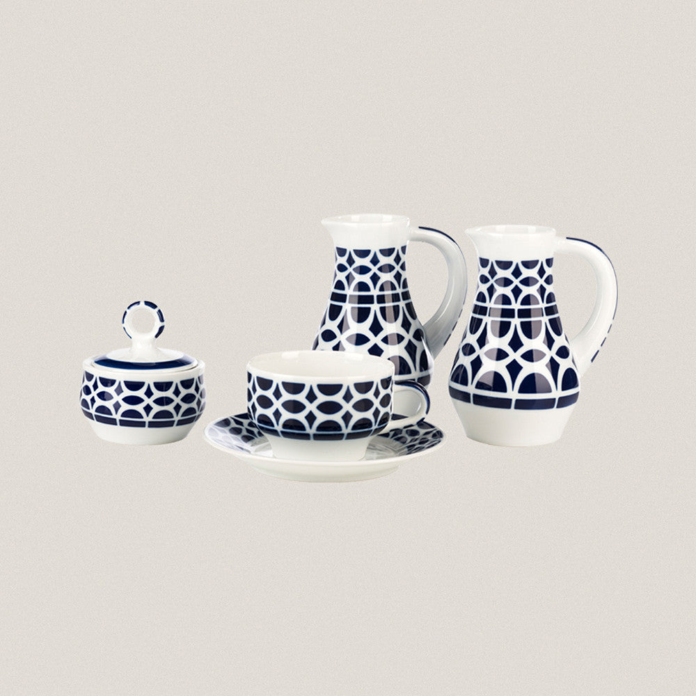 Juego de desayuno perteneciente al decorado Viz está inspirada en las formas geométricas del balcón de una casa de Burela (Lugo).