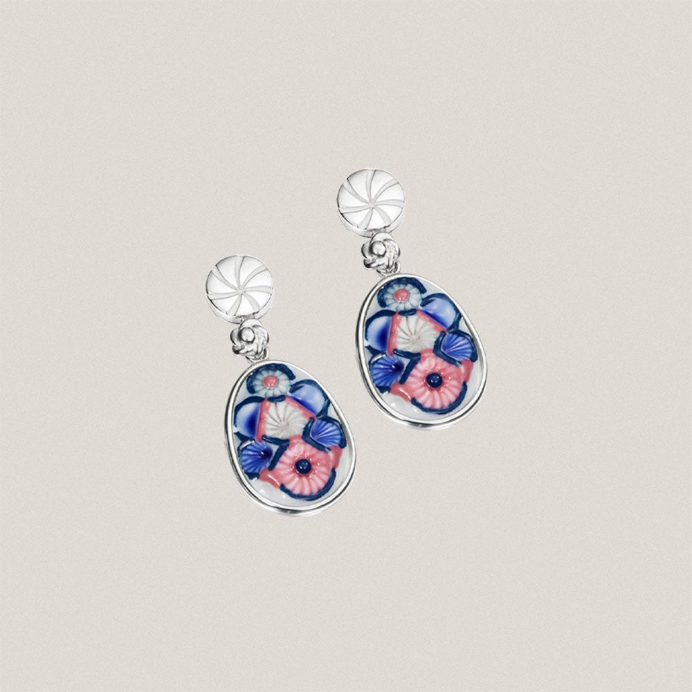 Pendientes de plata de 1ª Ley 925 con placa engastada de porcelana tallada y pintada a mano bajo esmalte.