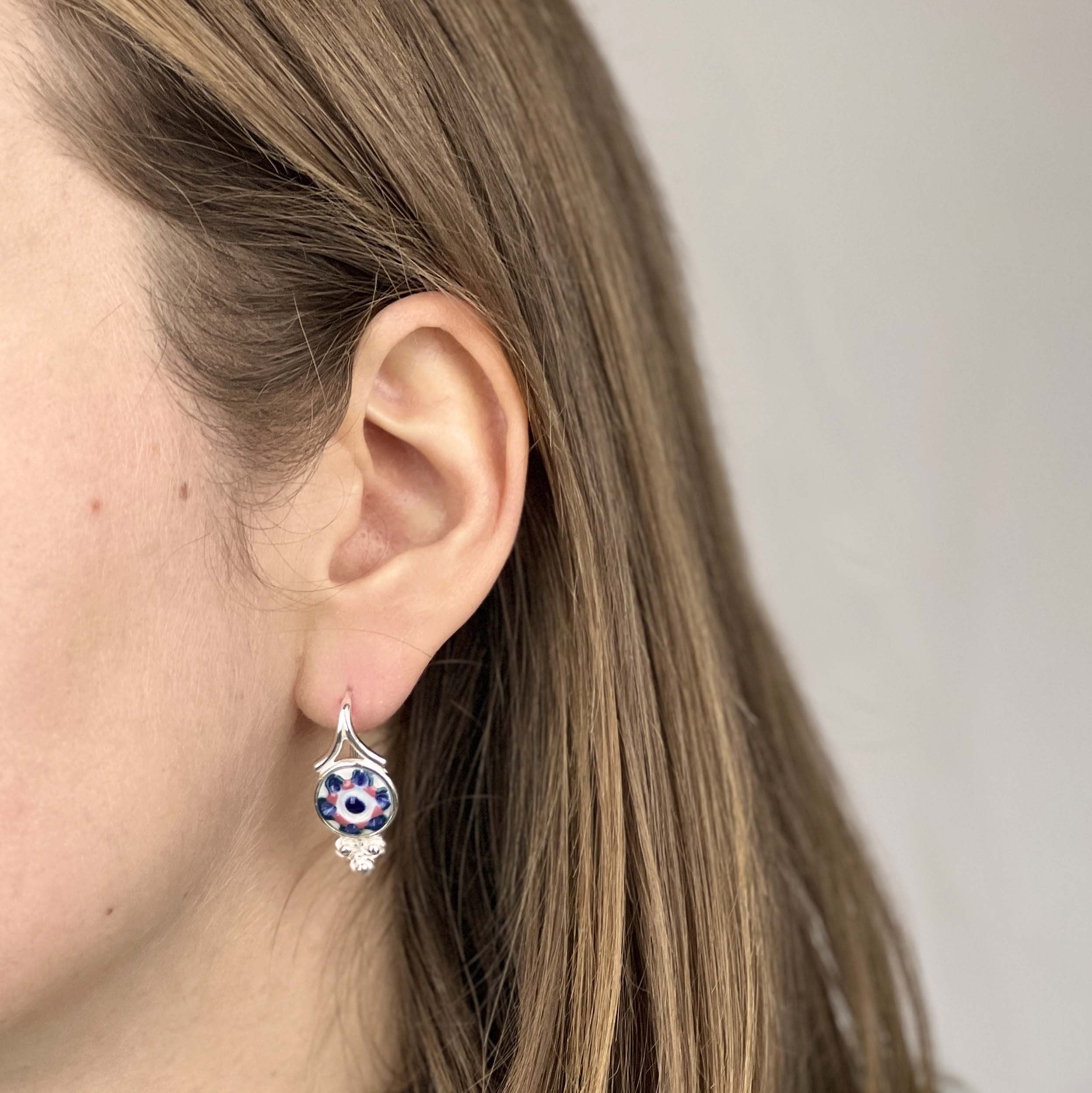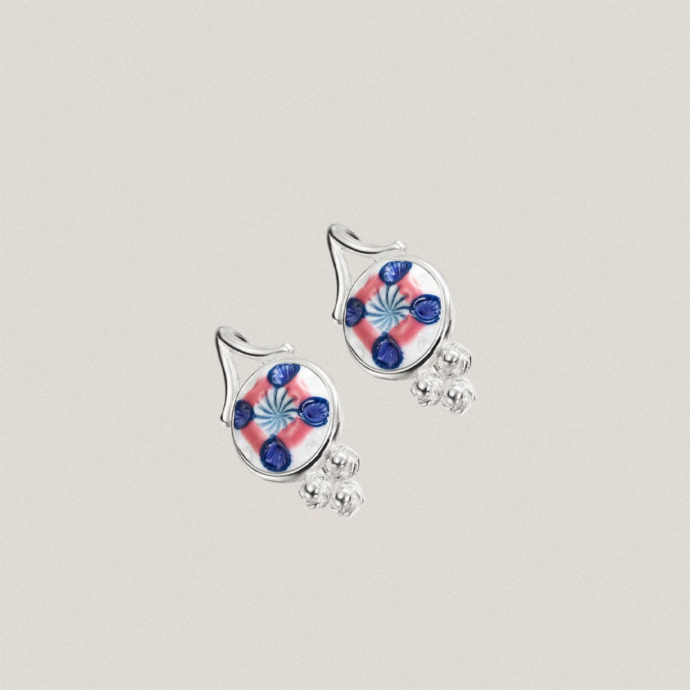 Pendientes de Plata de 1ª Ley 925 con placa engastada de porcelana tallada y pintada a mano bajo esmalte.