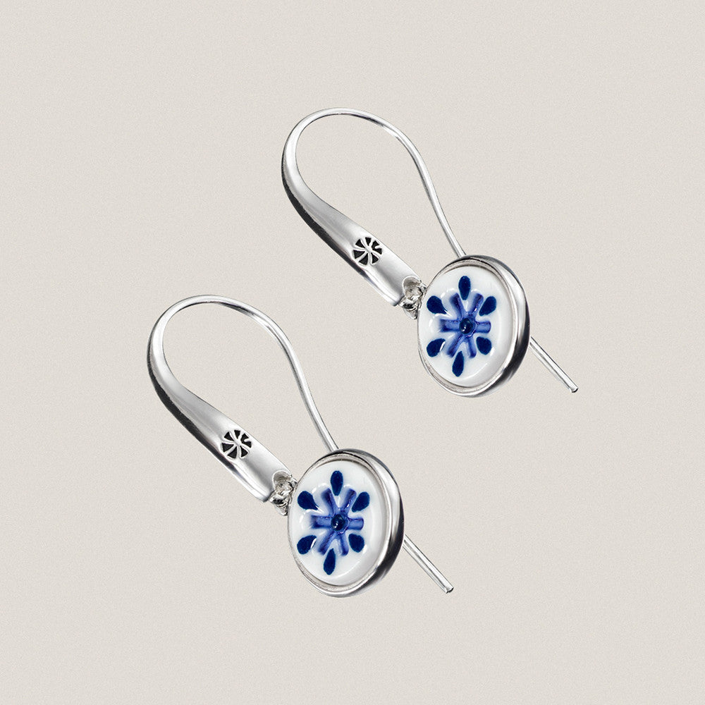 Material: Pendientes de gancho en Plata de 1ª Ley 925 y pátina envejecida. Placa Swing modelada y pintada a mano en tonos azules.