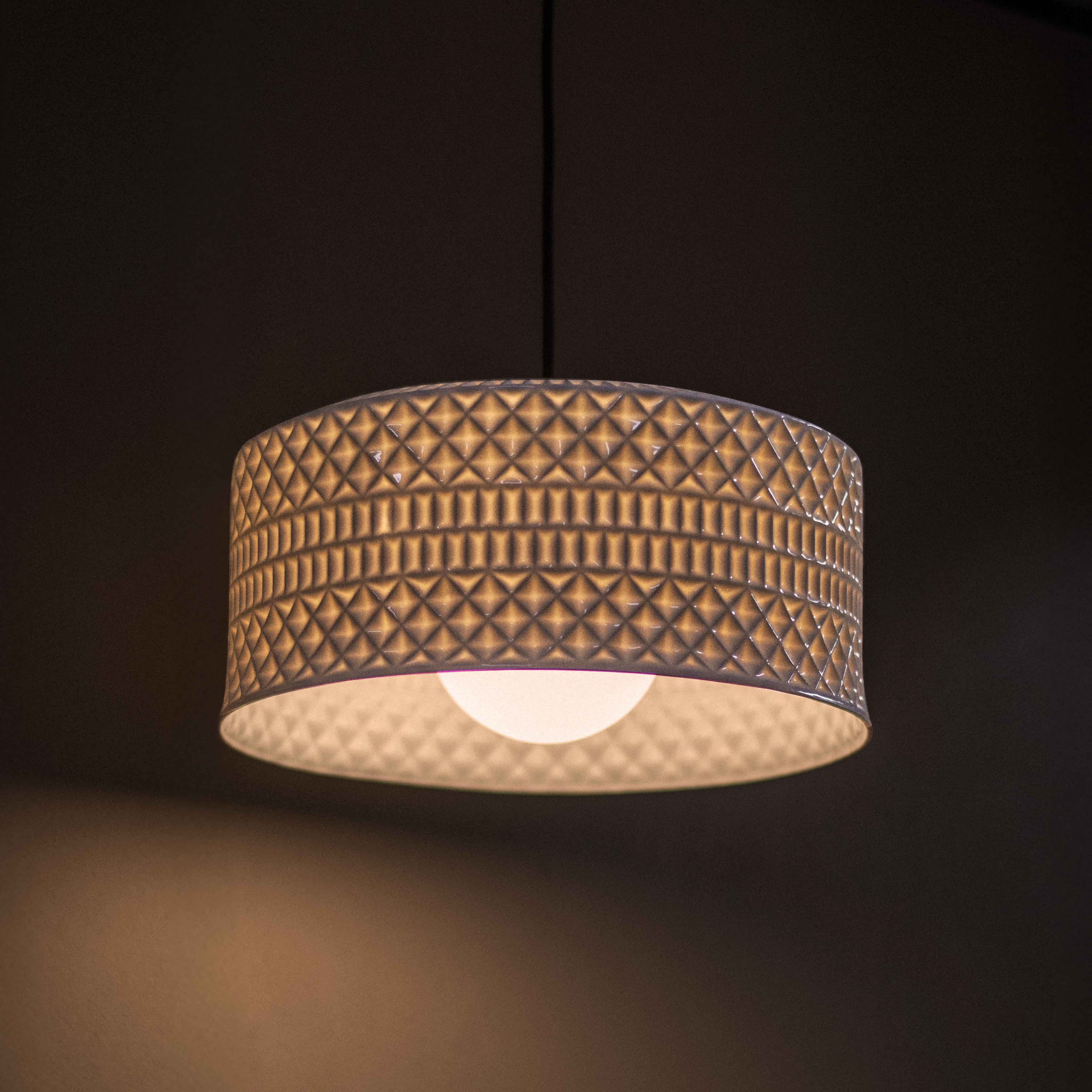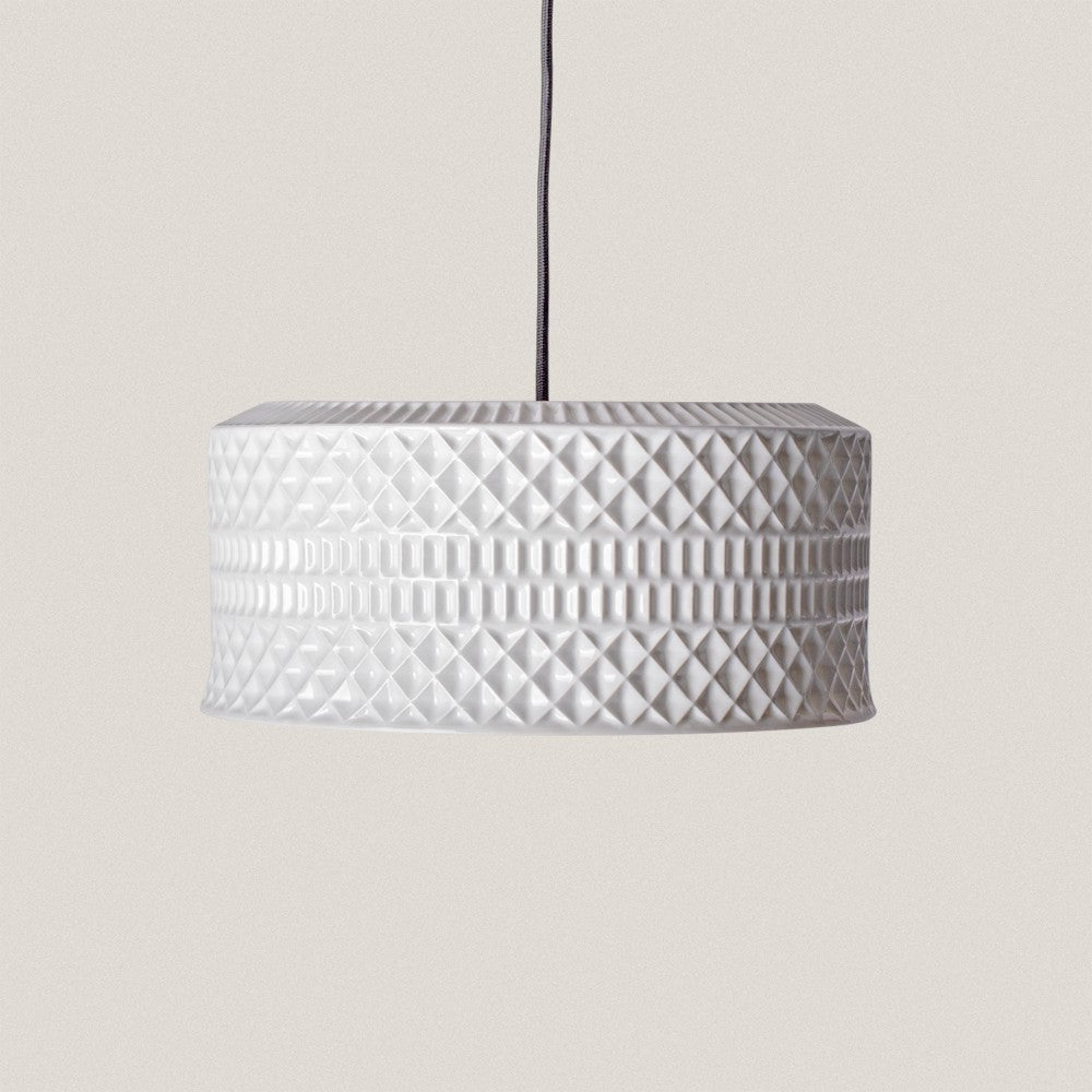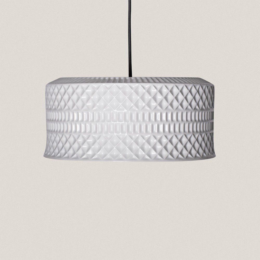 La iglesia parroquial de San Xoán de Portomarín, uno de los más importantes monumentos románicos del Camino de Santiago, está relacionada con las leyendas de ciudades inundadas. Después de siete siglos, en 1963 fue trasladada piedra a piedra al alto del Cristo, donde se diseñó una nueva villa, declarada Conjunto Histórico Artístico. Sargadelos, fiel a su ideario de analizar la singularidad que distingue el antiguo arte de Galicia, estudió unos decorados en bajorrelieve para servicios de mesa, con el nombre Portomarínico. Siguiendo el estilo de la icónica vajilla proponemos una nueva línea de iluminación que resalta la traslucidez de nuestra porcelana y potencia los rasgos del relieve.