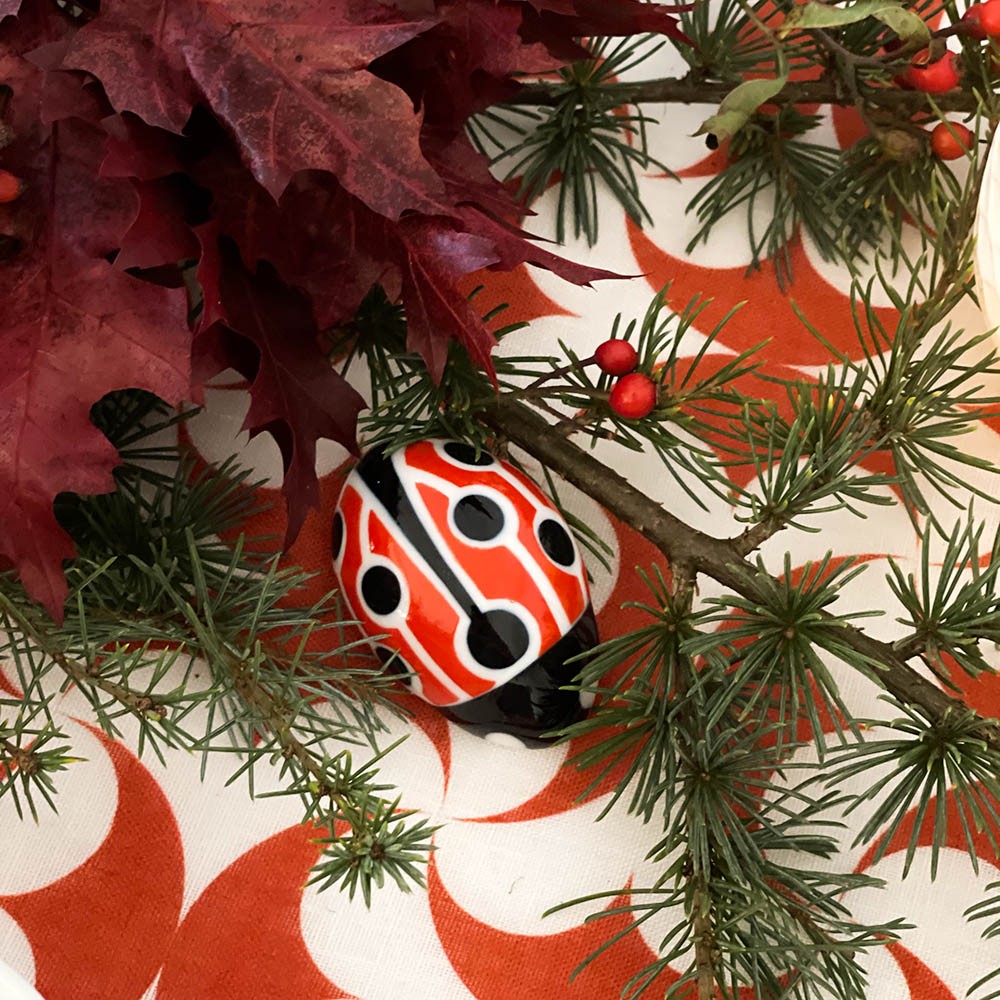 Nos hemos basado en estos simpáticos insectos para crear una pieza única en porcelana de alta calidad y colores vistosas con el propósito de que lleven la buena suerte a aquellos hogares en los que se asienten. Medidas: Largo: 5,8 cm Ancho: 4 cm. Alto: 2,5 cm. Material: Porcelana. Cuidados:Limpiar con un paño suave y húmedo.