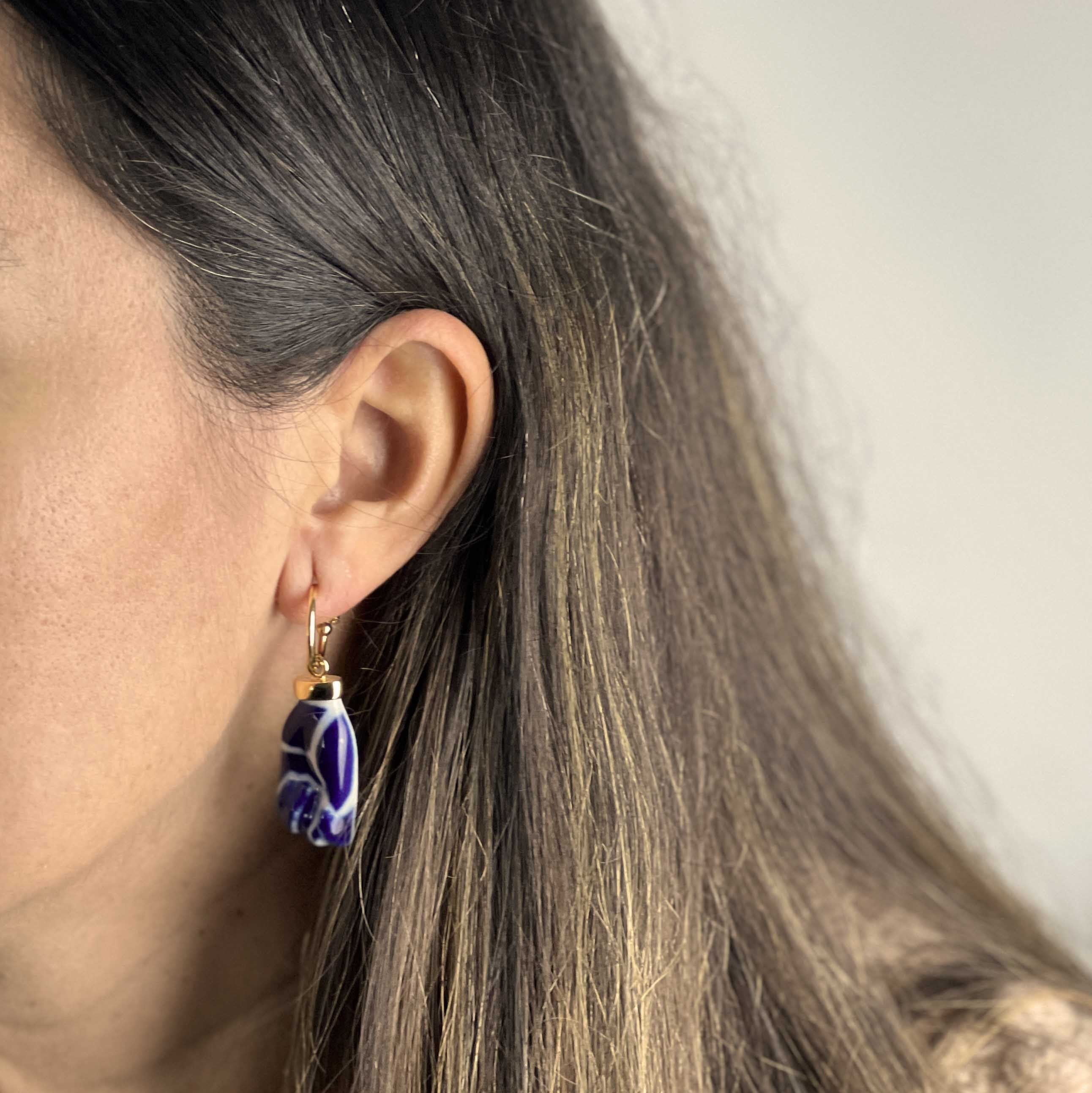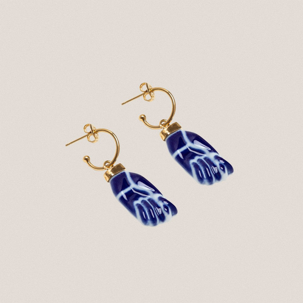 Pendientes de aro con la icónica "Figa", fetiche protector contra todas las "meigas". La característica figa que es amuleto gallego contra todo lo negativo convertida en pendientes de aro.