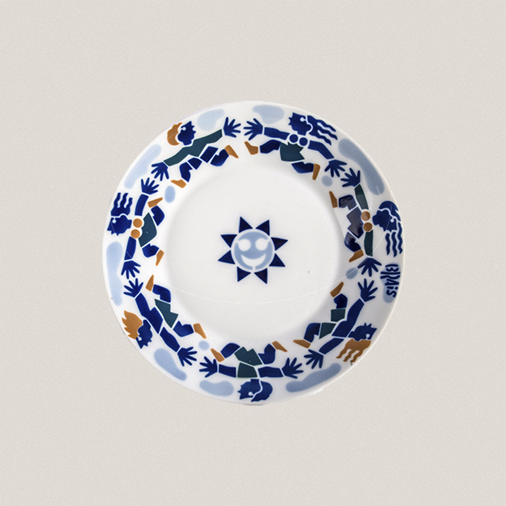 Plato de postre perteneciente a la vajilla infantil con decorado de juegos populares.