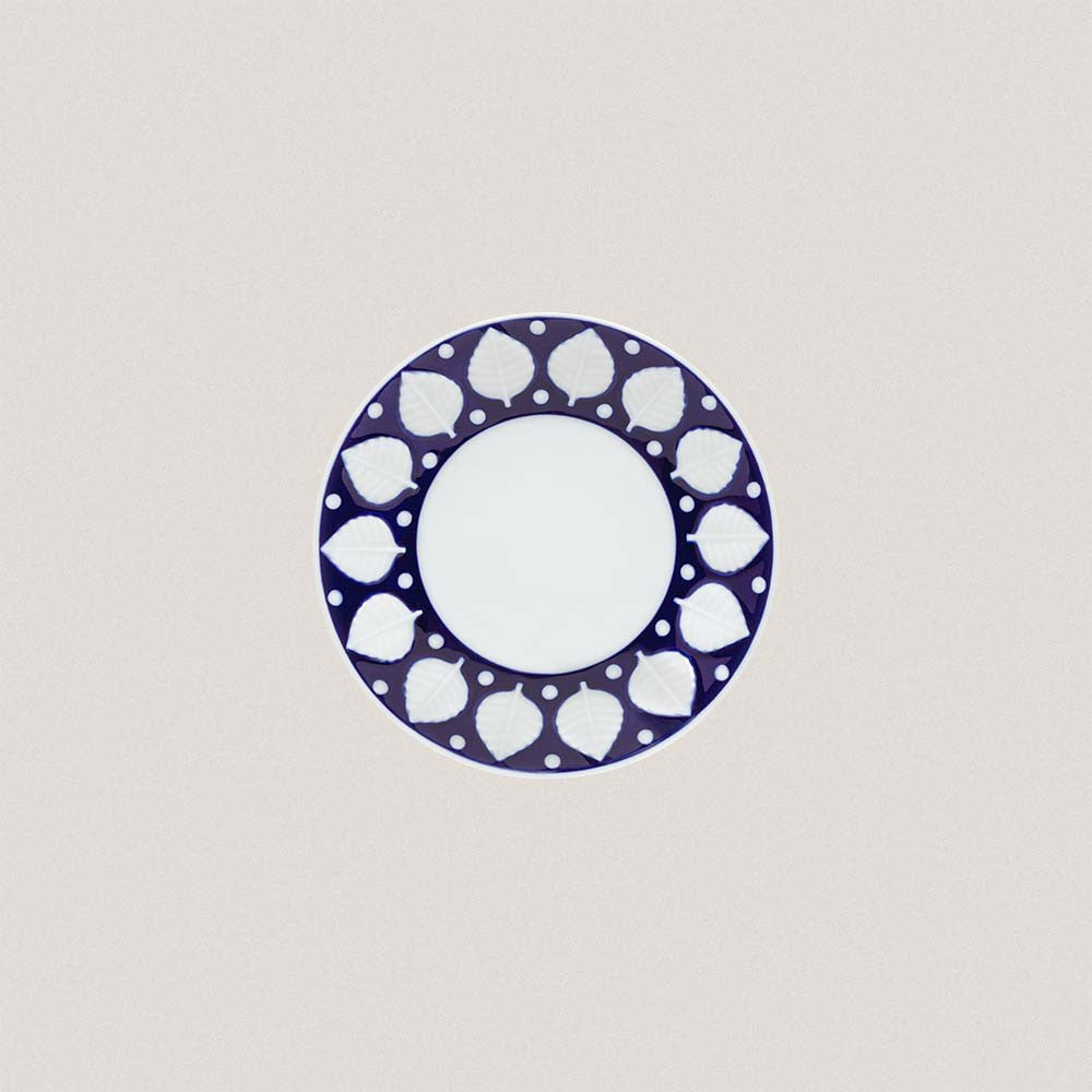 Plato de pan o postre perteneciente al decorado F73 azul nace de la observación del fascinante mundo vegetal.