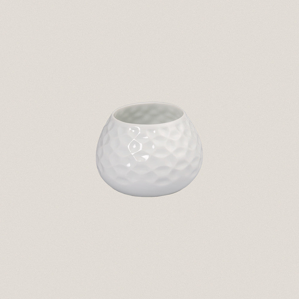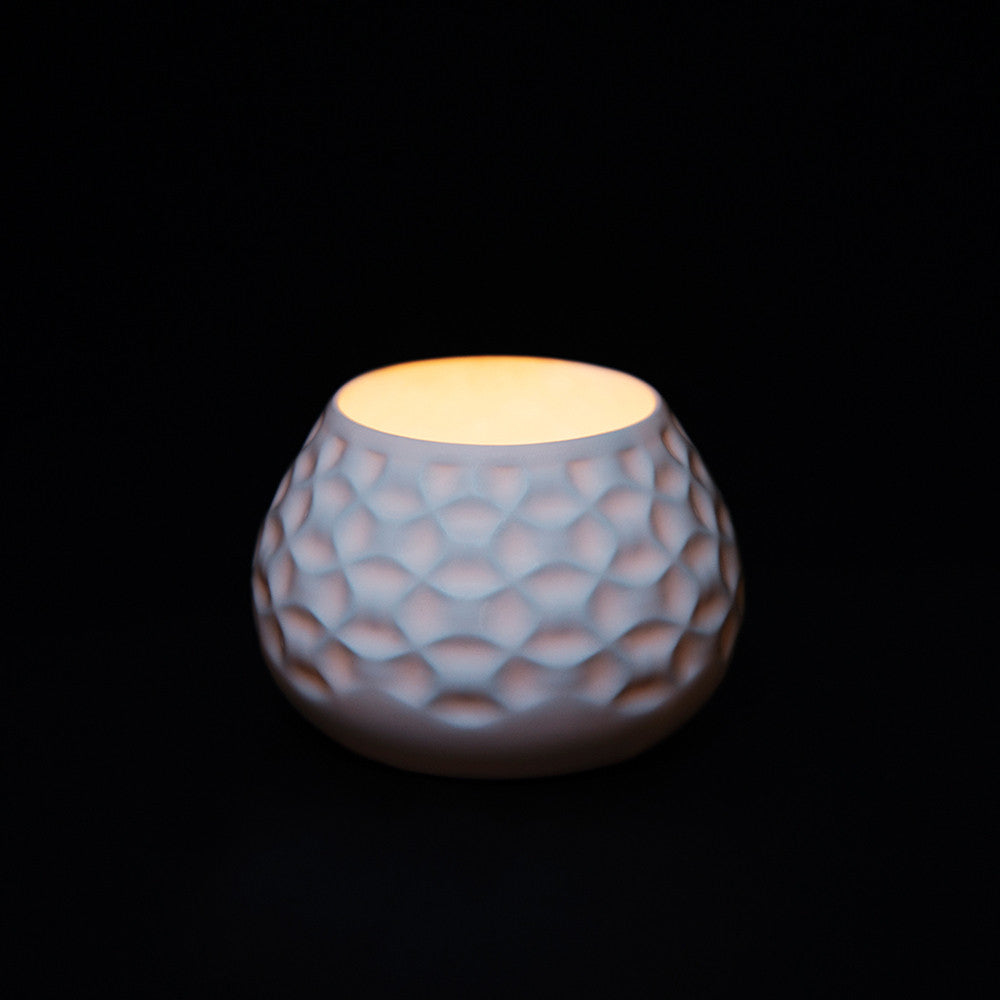 Portavelas en relieve inspirado en ondas, construido mediante formas geométricas complejas que se unen entre sí formando un entramado armónico.