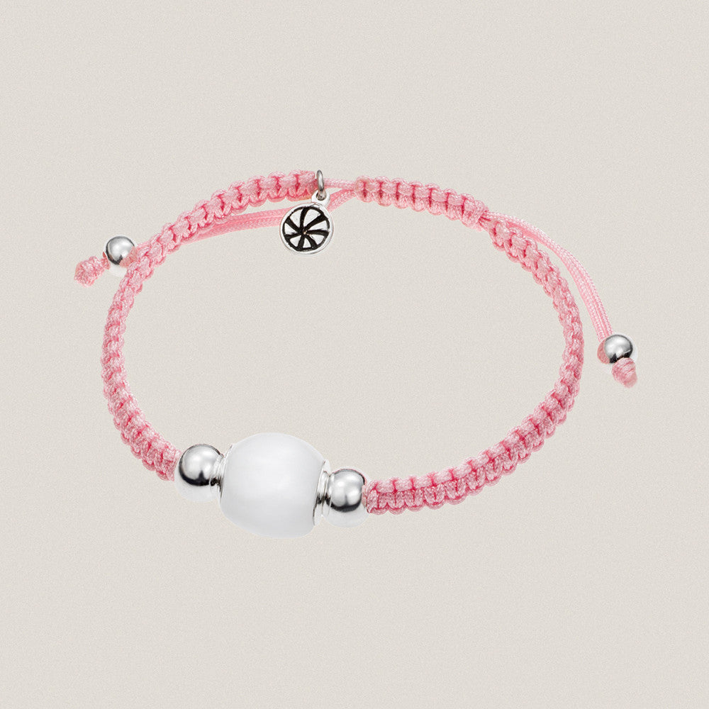 Pulsera ajustable de macramé rematada en plata con pieza central de porcelana.