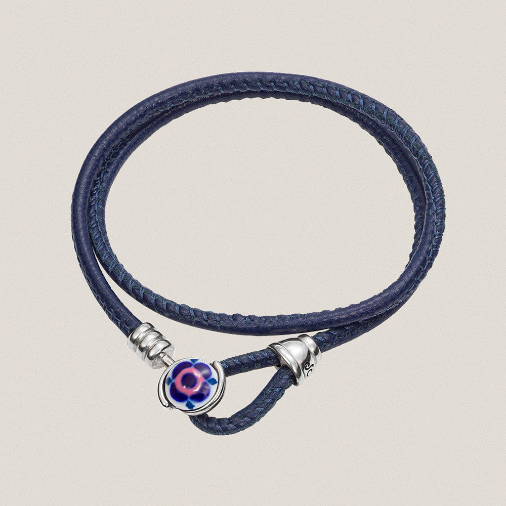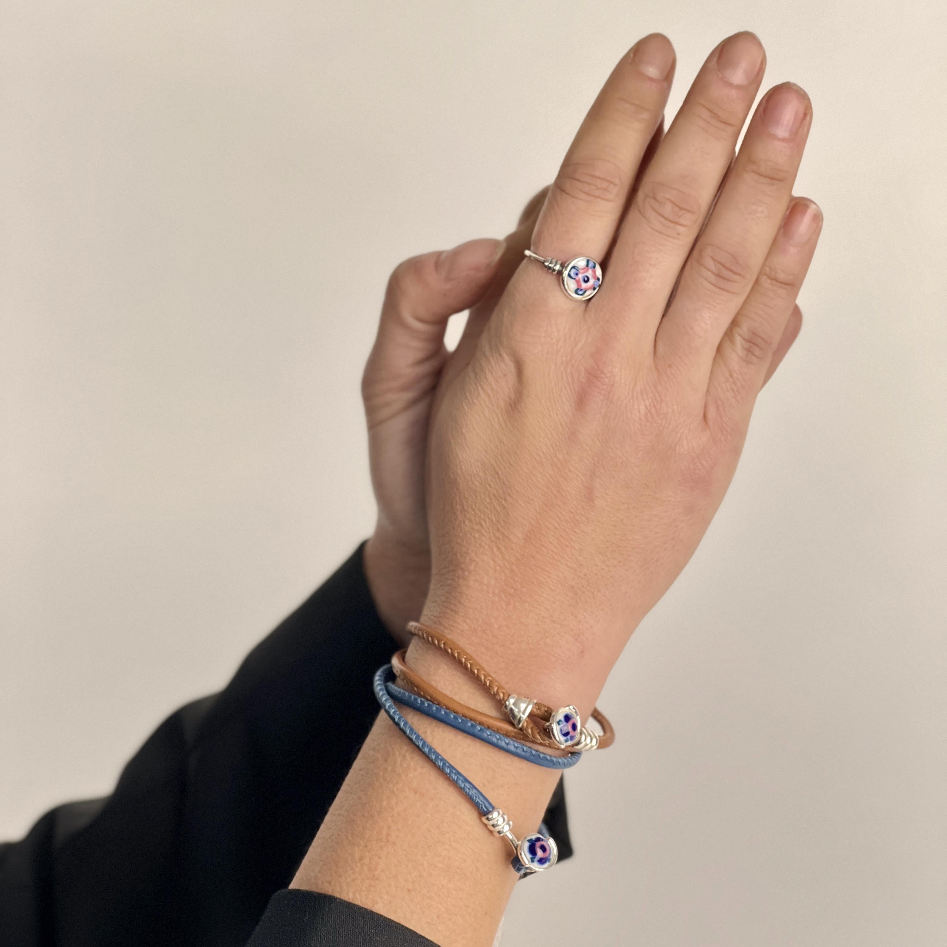Pulsera con placa de porcelana pintada a mano bajo esmalte, inspirada en las placas tradicionales de SARGADELOS