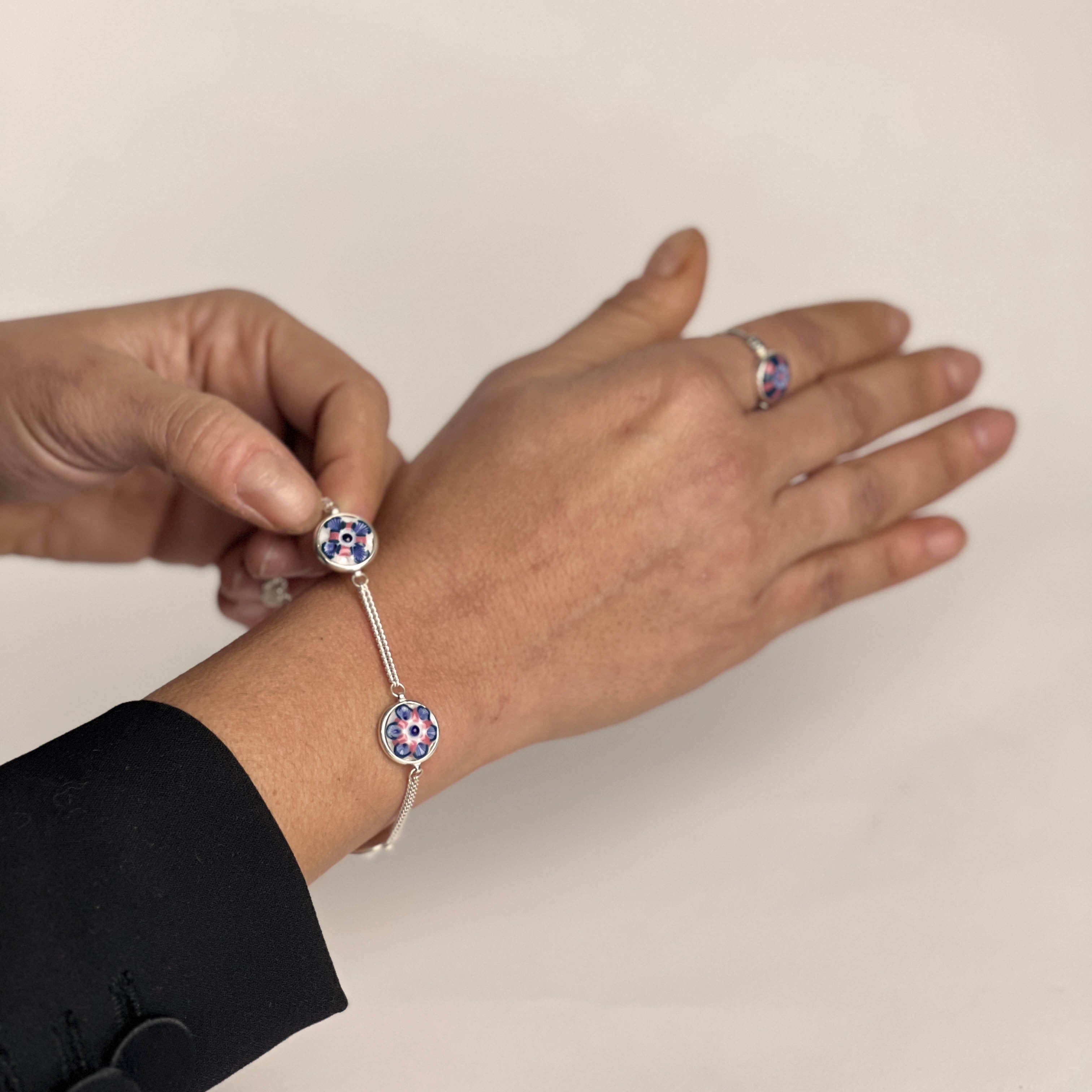 Pulsera formada por tres Placas Tradición Nº 1 talladas y decoradas a mano.