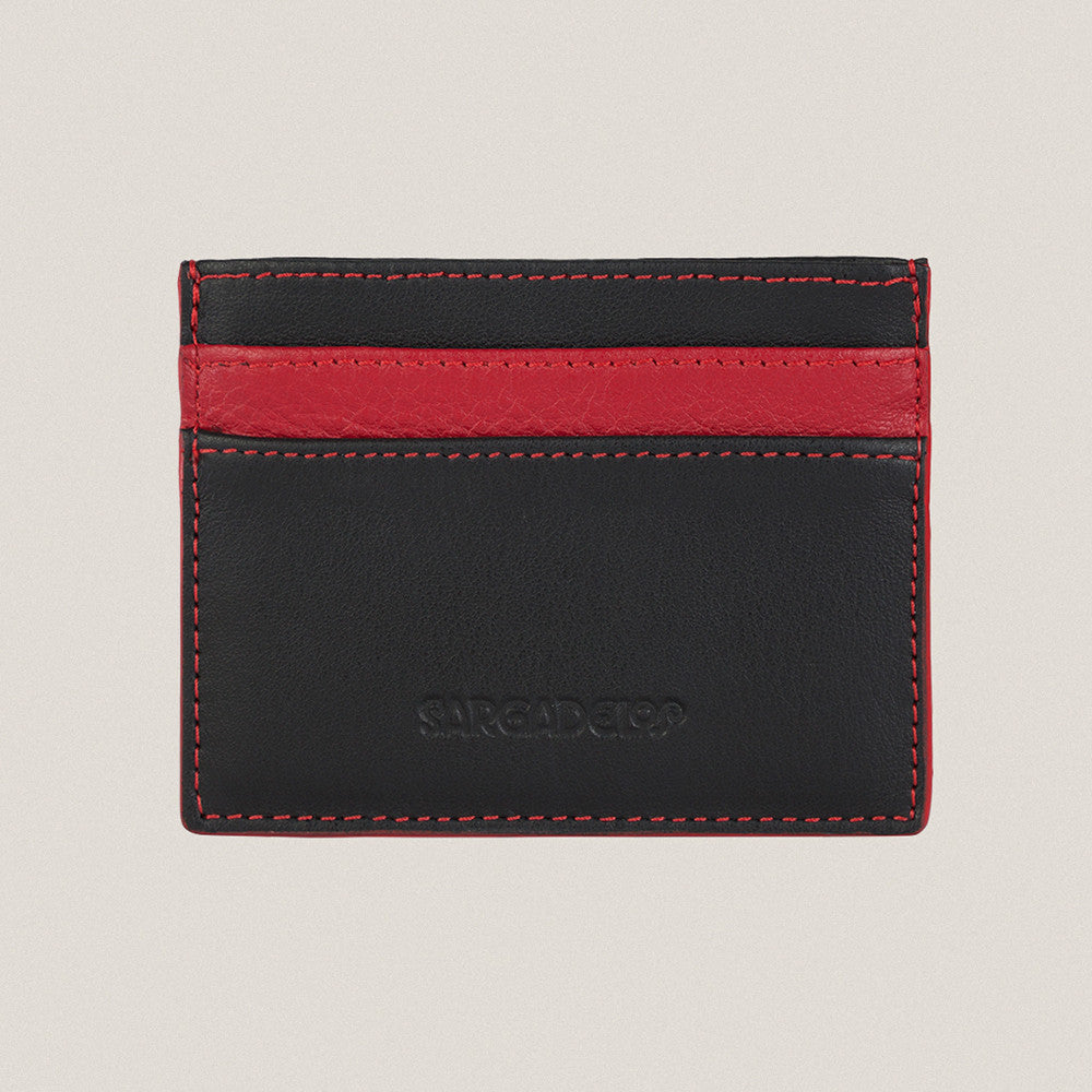 Tarjetero elaborado en piel de vacuno a juego con la cartera Mon. Nombre de Sargadelos grabado en piel.