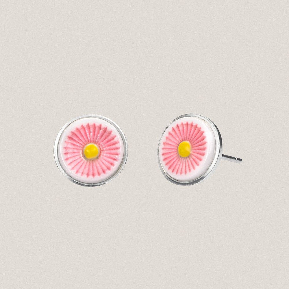 Pendientes en plata de ley 925 con flor rosa de porcelana.